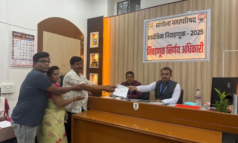 सांगोळा नगरपरिषदेच्या प्रभाग क्रमांक 4 साठी नगरसेवकपदाचे उमेदवार विनायक लोखंडे व विद्या लोखंडे यांनी आज आपला